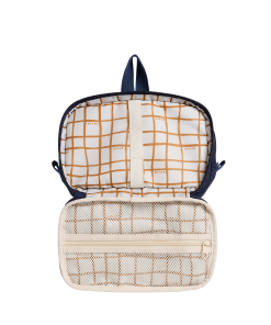 A compact toiletry kit with a surprising capacity, featuring an expandable design for extra storage and space for full-sized bottles. Perfect for over-packers who want to keep it organized.