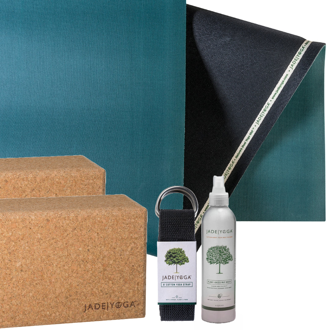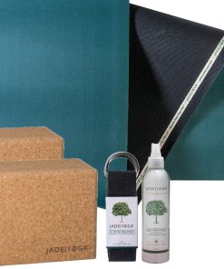 The Elite S is ideal for Ashtanga, and those with flowing practices. An extra dense top layer gives the mat added firmness and durability, while its smooth surface boasts outstanding grip for almost any practice. Along with the Elite S, are two large Jade Cork Blocks, Jade’s 8′ cotton strap along with our 8 oz mat wash.